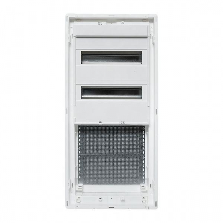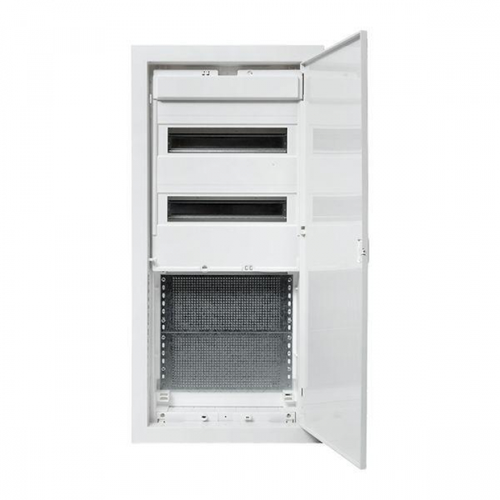 Корпуса пластиковые серии «Nova» предназначены для сборки силовых, слаботочных и комбинированных щитов. На DIN-рейки устанавливается модульное оборудование. На монтажные платы – антенные разветвители, Wi-Fi роутеры, патч-панели и иное слаботочное оборудование. Щиты устанавливаются как в бетонные и кирпичные стены, так и в гипсокартон, монтажные комплекты для установки в гипсокартон входят в комплектацию оснований щитов либо в комплектацию щитов в сборе. Двери щитов можно выбрать их разных материалов – пластик, металл или металл с перфорацией. Также доступны дополнительные аксессуары, необходимые для установки мультимедийного оборудования и существенно упрощающих монтаж щитов. Есть возможность приобрести как отдельно основание щита и дверь, так и основание с дверью в комплекте в одной коробке. Основные преимущества: съемные шасси с din-рейками, съемные кабельные фланцы, гребенка для фиксации входящих проводников, регулировка дверей по глубине, современный минималистичный дизайн