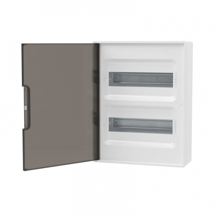 Щиток настенный 24мод. FRAME с тонированной дверцей с шин. PEN 2шт 8 отв. + 2шт 6 отв. бел. DKC F24W1WD