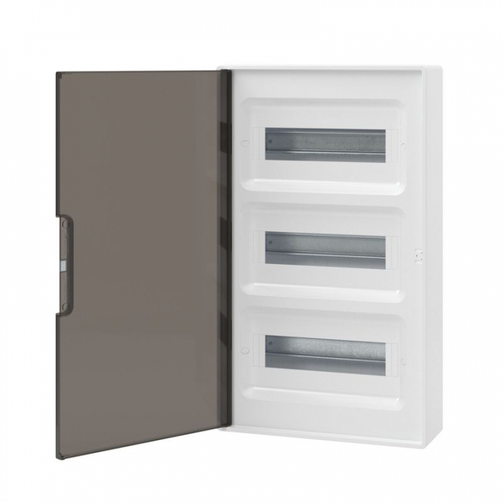 Щиток настенный 36мод. IP41 с тонированной дверцей с шинами PEN 2шт 8 отверст.+2шт 10 отверст. бел. DKC F36W1WD