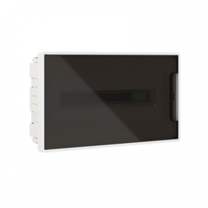 Щиток встраиваемый FRAME 18мод с тонированной дверцей с 2 шинами PEN на 8 и 10 отверст. бел. DKC F18B1WD