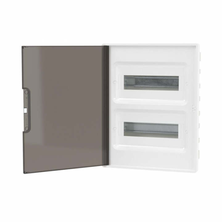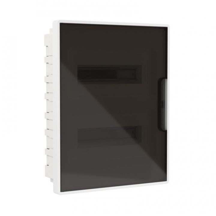 Щиток встраиваемый FRAME 24мод с тонированной дверцей с 4 шинами PEN (2шт на 8 отверст. и 2шт на 6 отверст.) бел. DKC F24B1WD