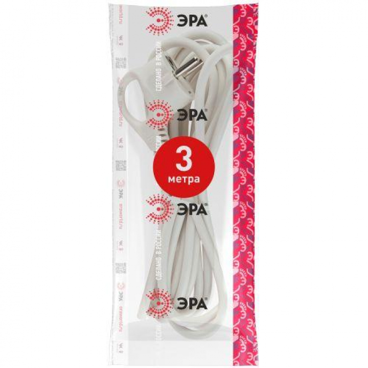 Шнур сетевой с вилкой 3м с заземл. ПВС 3х1.5 бел. U-3x1.5-3m-W ЭРА Б0048708
