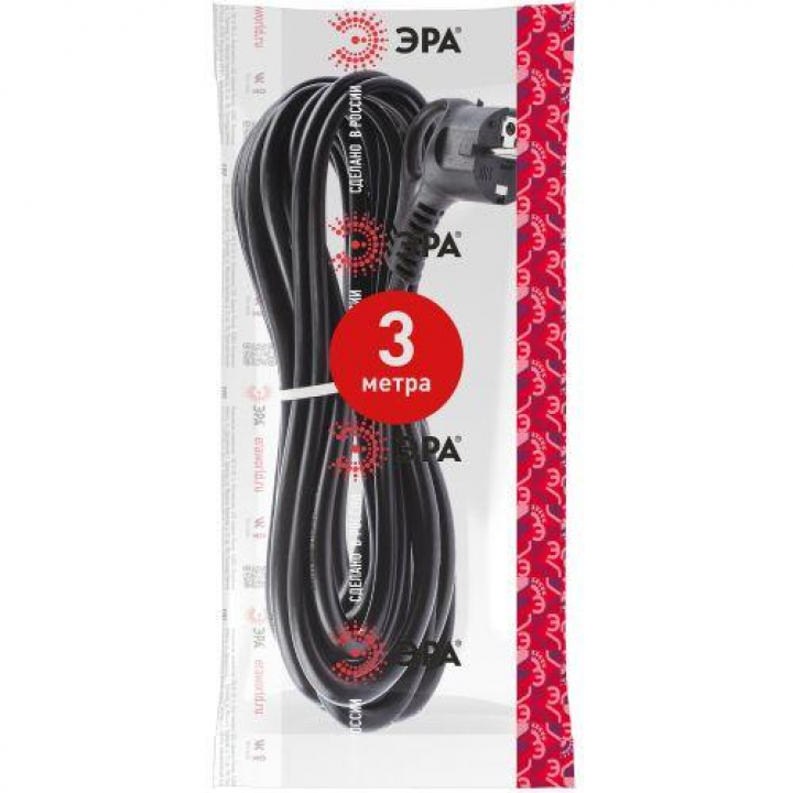 Шнур сетевой с вилкой 3м с заземл. ПВС 3х1.5 черн. U-3x1.5-3m-B ЭРА Б0048709