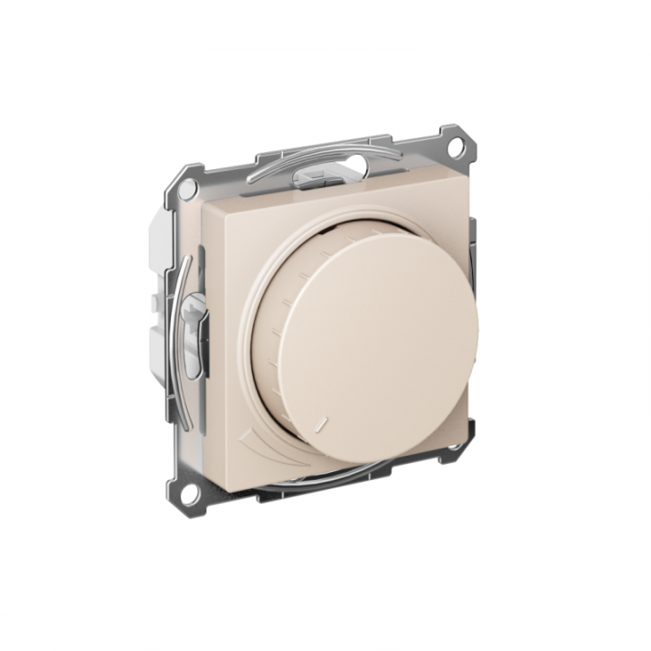 Механизм светорегулятора Systeme Electric серии AtlasDesign в цвете бежевый поворотно-нажимной для нагрузки мощностью до 400 Вт, подходит для LED ламп. Светорегулятор позволяет установить в помещении комфортный уровень освещения. При подключении второго переключателя диммер может использоваться как проходной переключатель. Может использоваться как выключатель или переключатель. Выполнен из материала, стойкого к УФ-излучению и появлению царапин.