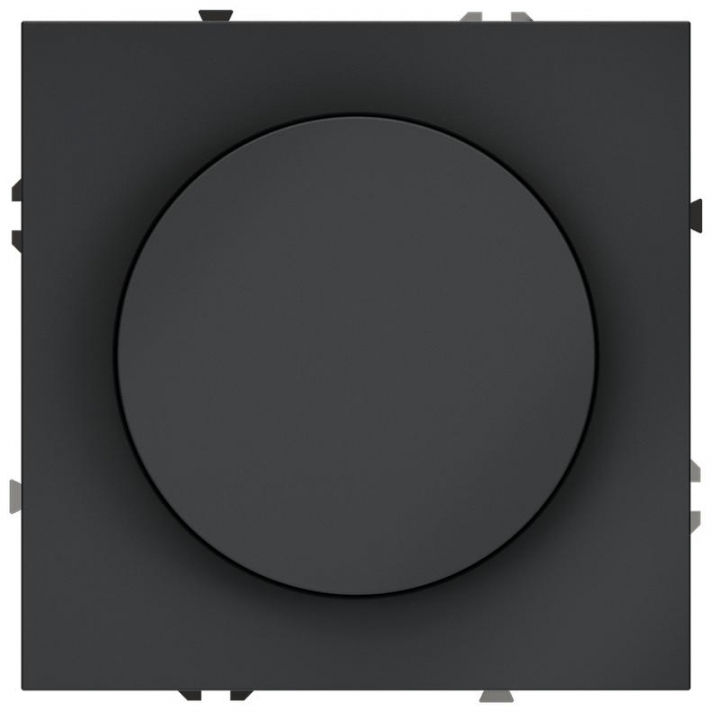Место установки. Светорегулятор необходим для управления яркостью освещения в помещении. Устройство совместимо с любым источником света, поддерживающим фазное диммирование. Корпус. Светорегулятор выполнен в виде вращающейся кнопки, позволяющей регулировать яркость в широком диапазоне. При нажатии на нее устройство работает как выключатель (включает/выключает освещение). Корпус — устойчивый к повреждениям и нагреву поликарбонат. Конструктивные особенности. Максимальная резистивная нагрузка светорегулятора — 300 Вт, минимальная — 5 Вт. Можно подключить устройство как обычный выключатель или по проходной схеме. Диммирование базируется на методе отсечения по заднему фронту, что гарантирует совместимость со светодиодными лампами и исключает появление резких колебаний напряжения. Ток увеличивается плавно, что особенно важно для сохранения производительности и долговечности светодиодных источников. Предусмотрена регулировка ограничения минимального уровня яркости (под накладкой механизма).