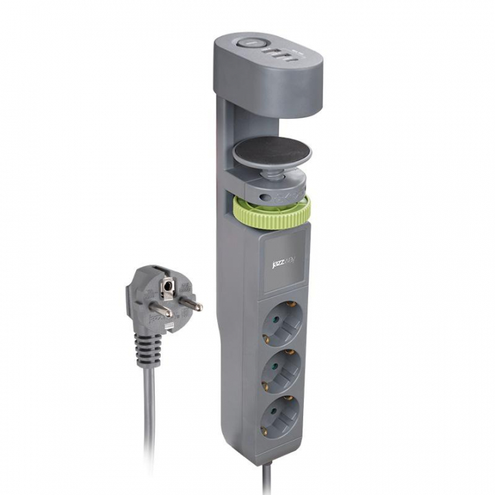 Удлинитель 3х1.5м на струбцине с заземл. с выкл. 3 USB выхода (2А+1С) IP20 ПВС 3х1 ETD-03U-150-gy (3х1.5) сер. JAZZway 5059559