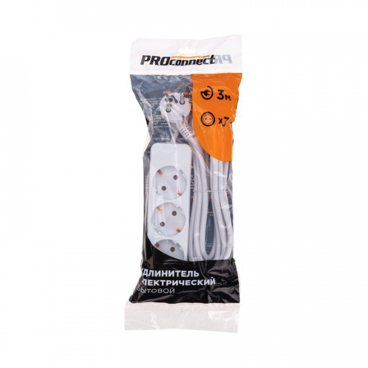 Удлинитель PROconnect предназначен для подключения электрических приборов и электроинструментов. Используется, когда стандартной длины шнура недостаточно для питания от стационарных розеток. Наличие 3 гнезд позволяет одновременно подключить несколько электроприборов. Универсальные розетки обеспечивают возможность подключения вилок как российского, так и европейского стандарта. Заземление защищает от поражения электрическим током и повышает безопасность при использовании. Угловая форма вилки облегчает подключение в ограниченном пространстве и уменьшает износ кабеля. Мощность – 1300 Вт.