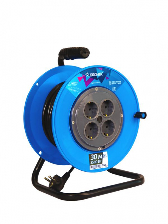Удлинитель на катушке 4х30м с заземл. 16А 3.5кВт ПВС 3х1.5 КОСМОС YKKsm30m-4g-Z(16A)