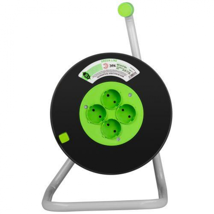 Удлинитель силовой ЭРА GREEN LINE на пластиковой катушке KAT-2x1.5-30m, 4 розетки без заземления. Провод ПВС 2х1,5мм2, 30м. Мощность 16А/3500Вт. Используется для работы на строительных площадках или дачных участках. Удобен при работе с приборами, находящимися удаленно от стационарной розетки. Например, газонокосилки, электрические, пилы, триммеры или электродрели. Рама катушки сделана из высокопрочной стали, а пластиковой корпус катушки выполнен с применением негорючих добавок.
