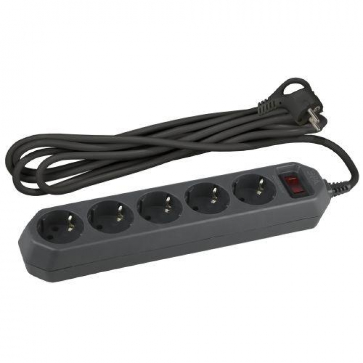 Удлинитель с сетевым фильтром 5х3м с заземл. 10А IP20 USF-5es-3m-B ПВС 3х0.75 с выкл. черн. Эра Б0019034