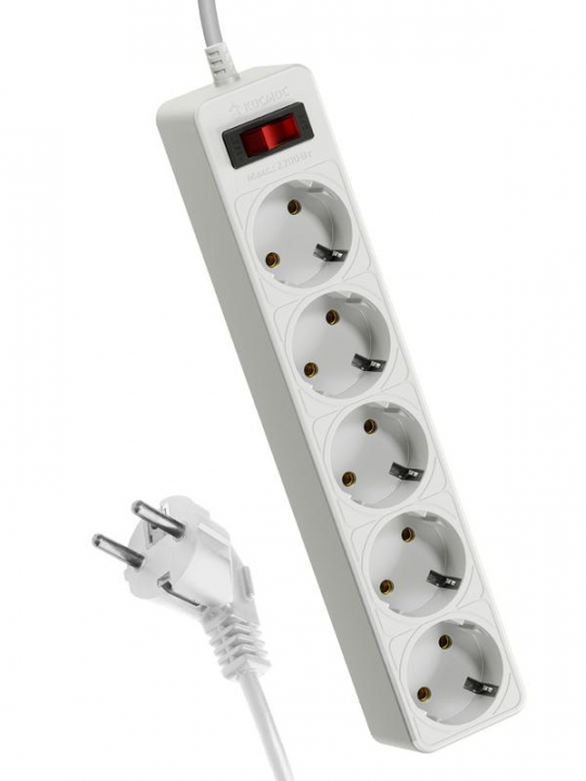 Белый сетевой фильтр 5м на 5 гнезд с двумя защитами для гаджетов и дорогой техники – варистор для защиты от «плохого» тока и терморазмыкатель для защиты от перегрузки и замыкания в сети. Сзади специальное крепление – можно повесить на стену. Корпус из негорючего полипропилена, 100% медный кабель ПВС 3х0,75мм (с заземлением). Контактная группа из латуни не деформируется со временем. Максимальная мощность подключения 2200Вт – хватит для нескольких устройств одновременно. 5 лет гарантии