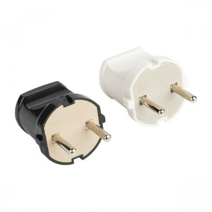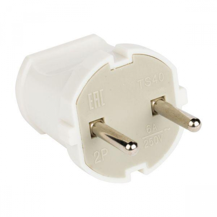 Вилка прямая 6А 250В без заземл. бел. EKF AVP6-10