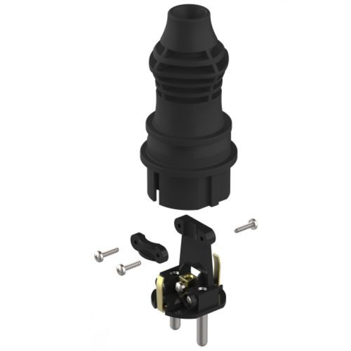 Прямая чёрная каучуковая вилка с заземлением из серии каучуковых разъёмов ЭРА российского производства. Имеется аналог в красном цвете. Рассчитана на нагрузку до 16 А и позволяет подключать кабель КГ сечением до 3x2.5 мм2. Корпус из мягкого и эластичного каучука, степень пыле- влагозащиты IP44. Успешно показывает себя при тестированиях в широком диапазоне температур: не теряет своих высоких технических характеристик и при -25 °C, и при +50 °C. Материал корпуса не поддерживает горение и соответствует требованиям ГОСТ IEC 60884. Надёжное решение для эксплуатации в сложных условиях.