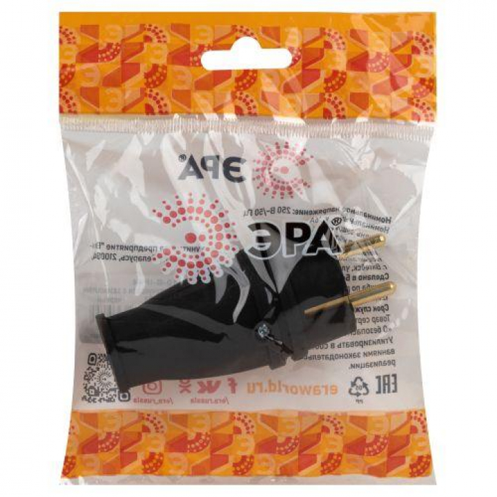 Вилка VX10-B-IP44 16А IP44 прямая с заземл. каучук черн. ЭРА Б0055414