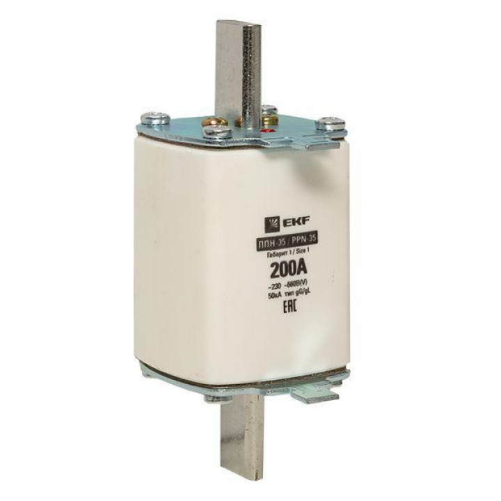 Плавкая вставка ППН-35 250/200А габарит 1 EKF. Предохранители плавкие ППН EKF, укомплектованные плавкими вставками типа gG/gL, предназначаются для защиты кабельных линий и промышленных электроустановок от токов перегрузки и короткого замыкания. Предохранители применяются в электрических сетях переменного тока частотой 50 Гц с напряжением до 660В. Применяются для крепления в распределительных и вводно-распределительных устройствах. Предохранители плавкие ППН могут устанавливаться в основание с держателем, а также в специально предназначенные рубильники. В комплект поставки предохранителей плавких ППН основание с держателем не входит и приобретается отдельно.