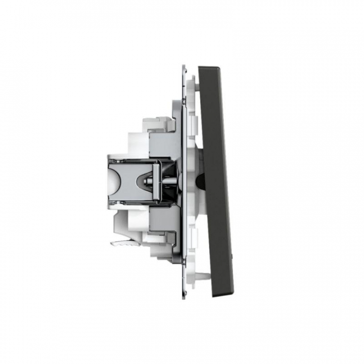 Механизм с быстрозажимными клеммами Systeme Electric серии ArtGallery в цвете базальт выключателя 1-клавишного с подсветкой подходит для сетей 250 В, на ток 10 А. С помощью новых быстрозажимных клемм монтаж стал быстрее. Для подключения не требуется отвертка. Решение для ценителей матовых поверхностей в интерьере, к которым приятно прикоснуться. Лицевые детали из качественного ABS-пластика, устойчивого к царапинам и УФ-излучению. Лучший промышленный дизайн (по итогам премии Минпромторг 2023).