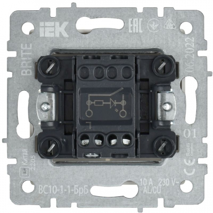 Выключатель 1-кл. СП BRITE ВС10-1-1-БрБ 10А с индик. механизм бел. IEK BR-V10-1-10-K01