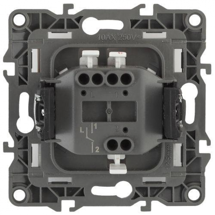 Выключатель 1-клавишный серии Эра 12 скрытой установки механизм цвет белый 12-1101-01. Номинальные характеристики 10А 250В . Сделан из поликарбоната, оснащёно автоматическими клеммами для быстрй и надёжной фиксации жил кабеля в механиме. Парные клеммы обеспечивают соединение шлейфом. Монтаж в подрозетник производится и на лапки, и на винты. Рамки приобретаются отдельно.