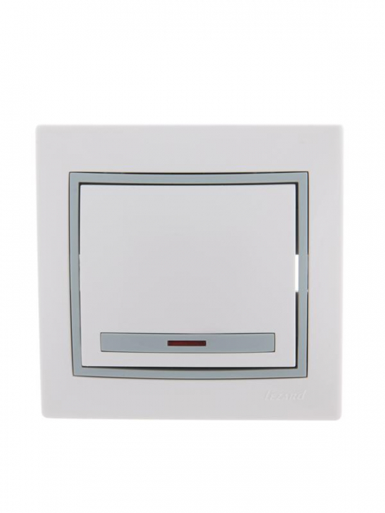 Выключатель 1-кл. СП Mira 10А IP20 с подсветкой с сер. вставкой бел. LEZARD 701-0215-111
