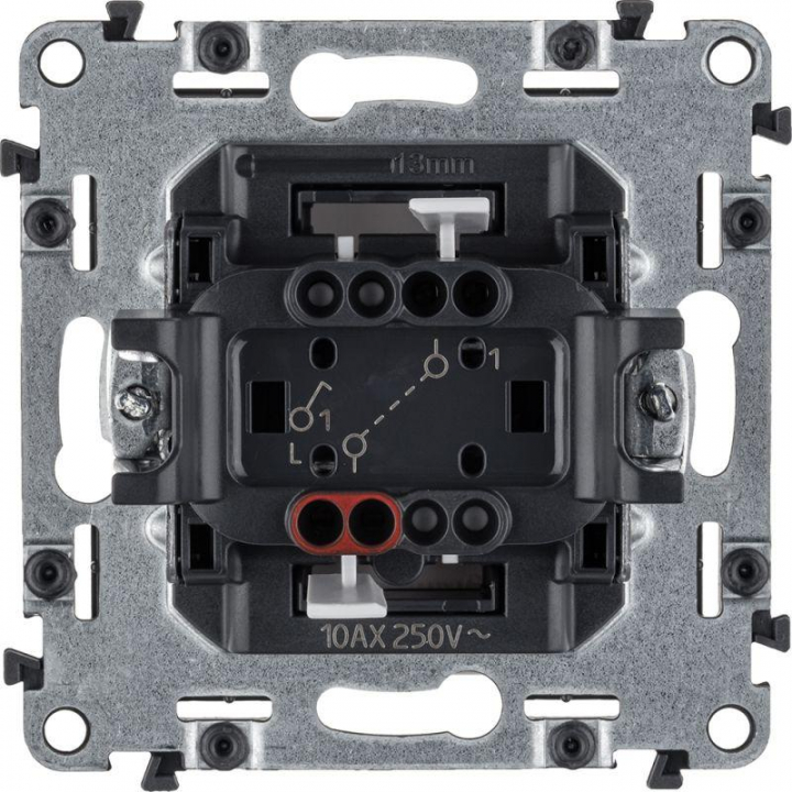 Механизм выключателя Valena Life 10АХ 250В с лицевой панелью; безвинтовые зажимы бел. Leg 752401 – электроустановочный механизм. Представляет собой одноклавишный выключатель, из пластика, с лицевой панелью белого цвета, скрытой установки, монтируемый под штукатурку.