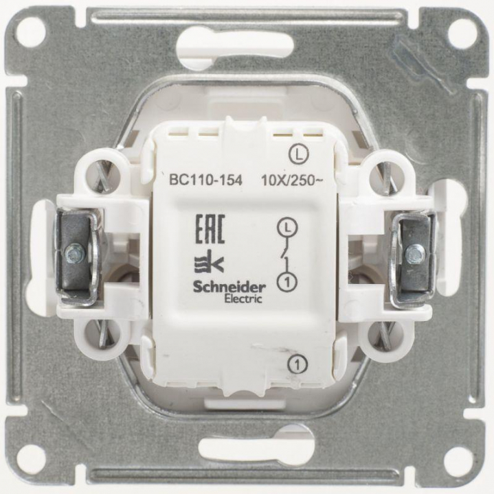 Механизм Systeme Electric (ранее Schneider Electric) W59 (цвет белый) выключателя 1-клавишного подходит для сетей 250 В, на ток до 10 А. - Серебряные контактные группы выключателей обеспечивают надёжный электрический контакт и пожаробезопасность. - Корпус изделия выполнен из высококачественного ABS-пластика.