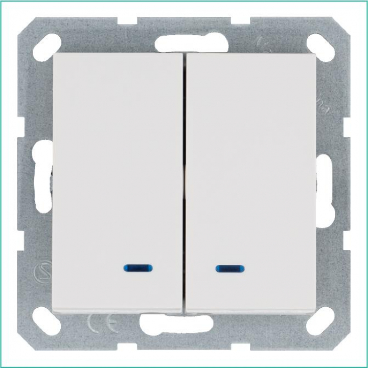Выключатель 2-кл. 10А IP20 с подсветкой механизм бел. глянцевый Jasmart G3023NW