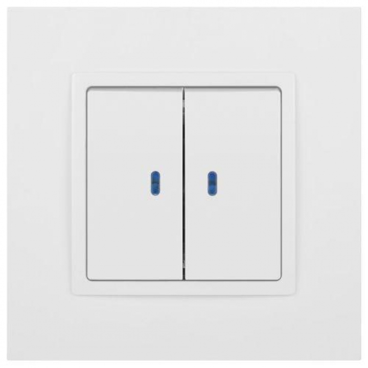 Выключатель 2-клавишный с подсветкой серии Эра Elegance цвет белый матовый 14-1105-01М. Характеристики 10А 250В. Оснащён автоматическими клеммами для надёжной фиксации жил кабеля в механизме. Рамки приобретаются отдельно.