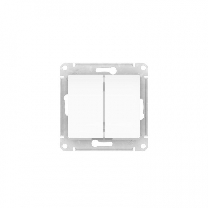 Механизм с быстрозажимными клеммами Systeme Electric (ранее Schneider Electric) серии Glossa (цвет белый) выключателя 2-клавишного подходит для сетей 250 В, на ток 10 А. С помощью новых быстрозажимных клемм монтаж розеток и выключателей стал намного быстрее. Теперь подключение не требует использования отвертки. Выполнен из материала PС+ASA, стойкого к УФ-излучению и появлению царапин.