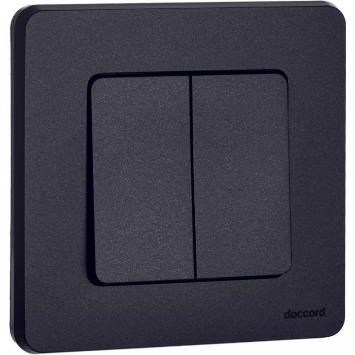 Выключатель двухклавишный скрытого монтажа Inspiria, цвет "Антрацит", номинальный ток 10АХ, напряжение ~250В, безвинтовые зажимы. Устанавливается в жилых и общественных помещениях для управления приборами освещения, вентиляции и т.д. Предназначен для управления двумя электрическими цепями.