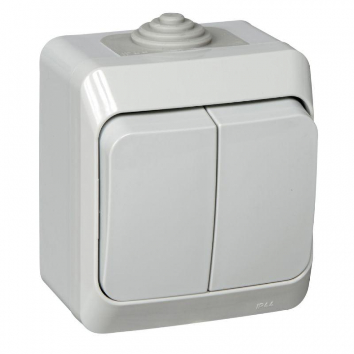 Выключатель Systeme Electric (ранее Schneider Electric) ЭТЮД (серый, открытой установки) двухклавишный предназначен для применения в сетях до 250В, на ток до 10А. Выключатель подходит для большинства типов ламп, включая люминесцентные. Две клавиши позволяют управлять двумя источниками света с одной точки. Он удобен в применении и отлично подходит для ванной комнаты (IP44). Сделано в России.