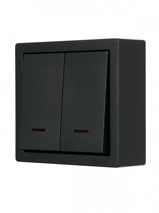 Выключатель 2-кл. ОП LETO с индикацией черн. бархат LEZARD 752-4200-112
