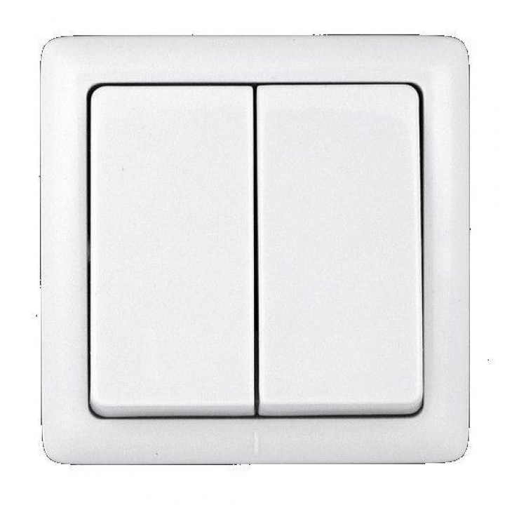 Выключатель двухклавишный Systeme Electric (ранее Schneider Electric) РОНДО (открытой установки, цвет белый) предназначен для сетей до 250 В, на ток до 6 А. Выключатель изготовлен из ABS-пластика, прост в установке, прочен и надежен в применении. Двухклавишный выключатель позволяет управлять двумя источниками света с одной точки. Сделано в России.