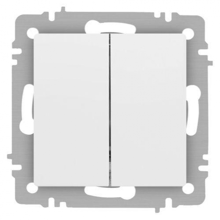 Выключатель 2-клавишный серии Intro Accent скрытой установки механизм цвет белый матовый 6-104-01М. Номинальные характеристики 10А 250В. Выполнен из негорючего термопласта, оснащён винтовыми клеммами. Парные клеммы обеспечивают соединение шлейфом. Монтаж в подрозетник производится и на лапки, и на винты. Рамка приобретается отдельно. В серии представлены рамки до 5 постов: на 1 пост - 6-501-хх, на 2 поста - 6-502-хх, на 3 поста - 6-503-хх, на 6 поста - 4-504-хх, на 5 постов - 6-505-хх (где хх - цветовой код: 01 - белый, 01М - матовый белый, 02 - слоновая кость, 03 - алюминий, 04 - шампань, 05 - антрацит, 06 - перламутр, 07 - графит, 08 - бронза, 09 - титан, 10 - венге, 11 - сосна).