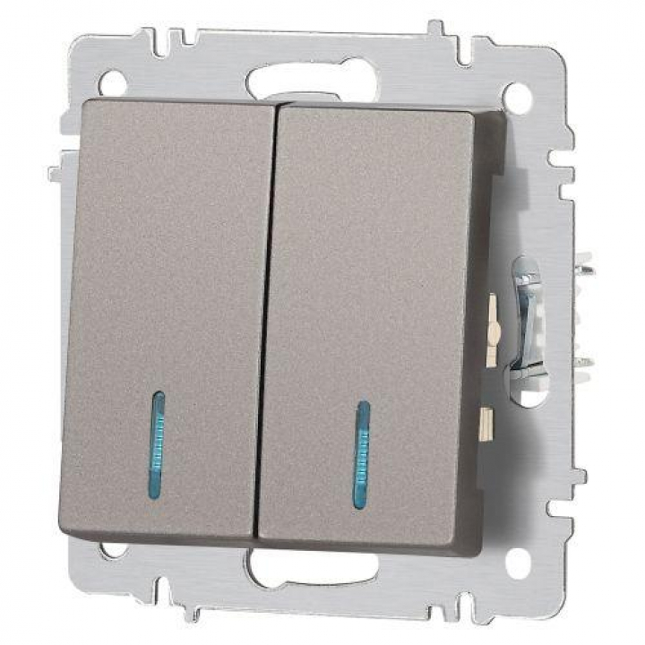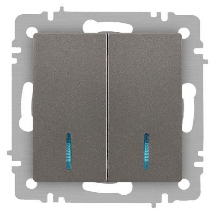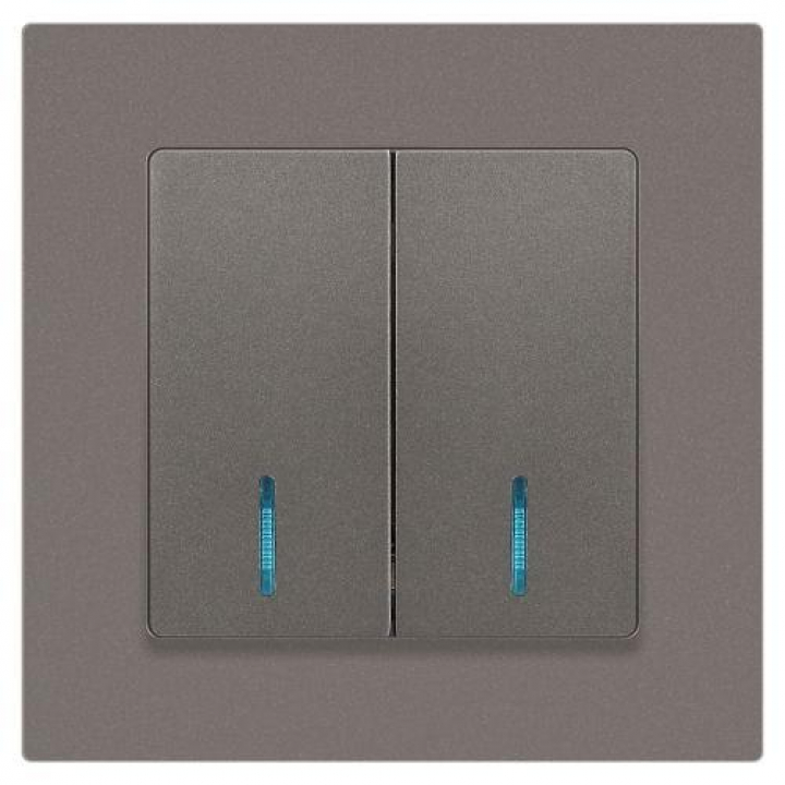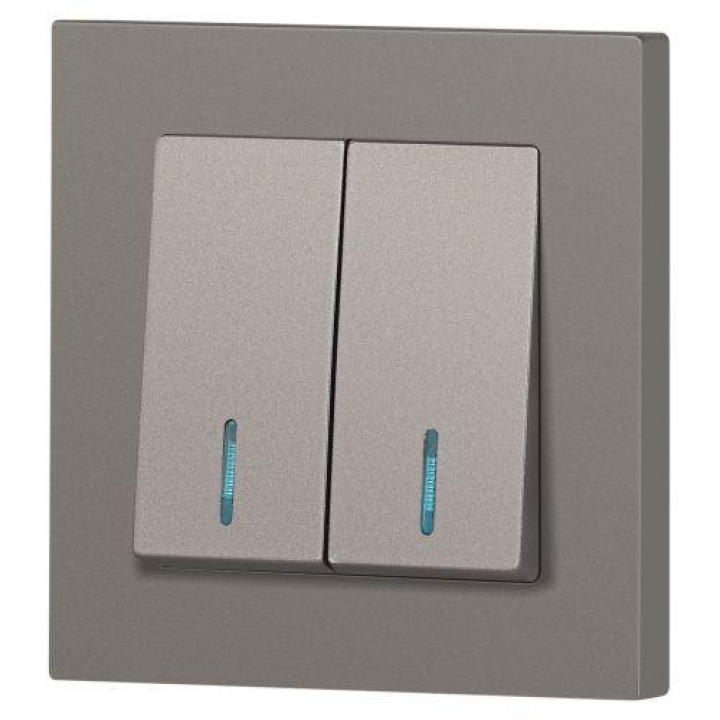 Выключатель 2-кл. СП Accent 6-105-09 10А IP20 250В с подсветкой AL/CU титан Intro Б0063525