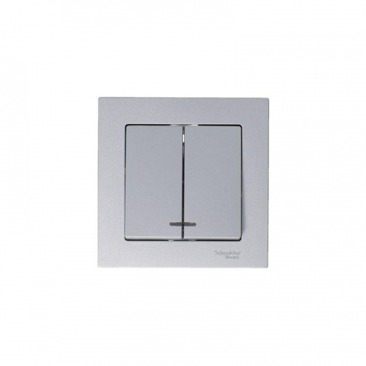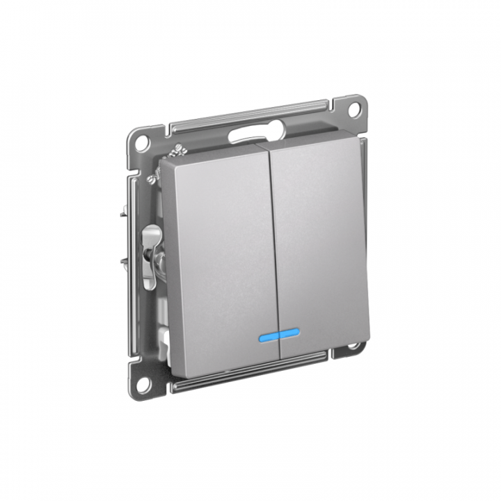 Механизм Systeme Electric (ранее Schneider Electric) серии AtlasDesign в цвете алюминий выключателя 2-клавишного c подсветкой подходит для сетей 250 В, на ток 10 А. Благодаря светодиодной подсветке синего цвета изделие легко найти в темноте. Двухклавишный выключатель позволяет управлять двумя источниками света с одной точки. Лицевые детали из качественного ABS-пластика, устойчивого к царапинам и УФ-излучению. Усиленные прямые монтажные лапки для лучшей фиксации механизма в монтажной коробке.
