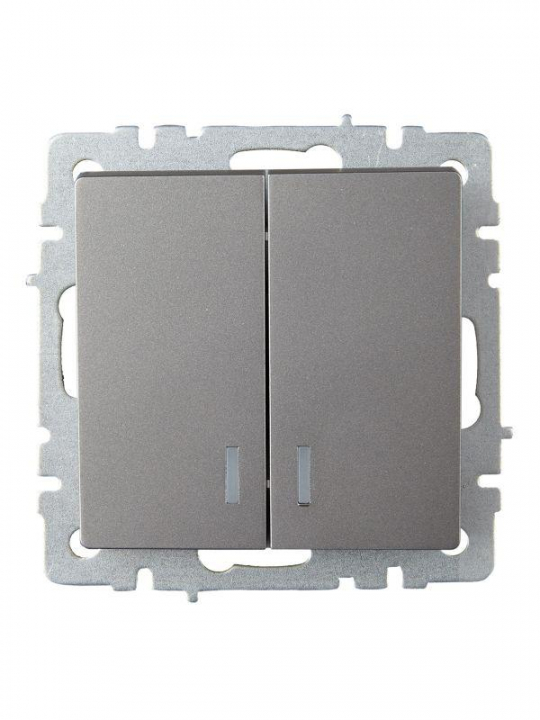 Выключатель 2-кл. СП BRITE ВС10-2-1-БрС 10А с индик. механизм сталь IEK BR-V20-1-10-K46