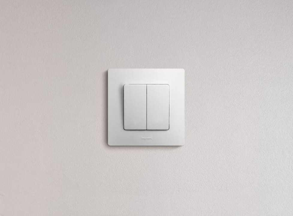 Выключатель двухклавишный ETIKA для скрытого монтажа, номинальный ток 10 А, предназначен для управления двумя электрическими цепями.