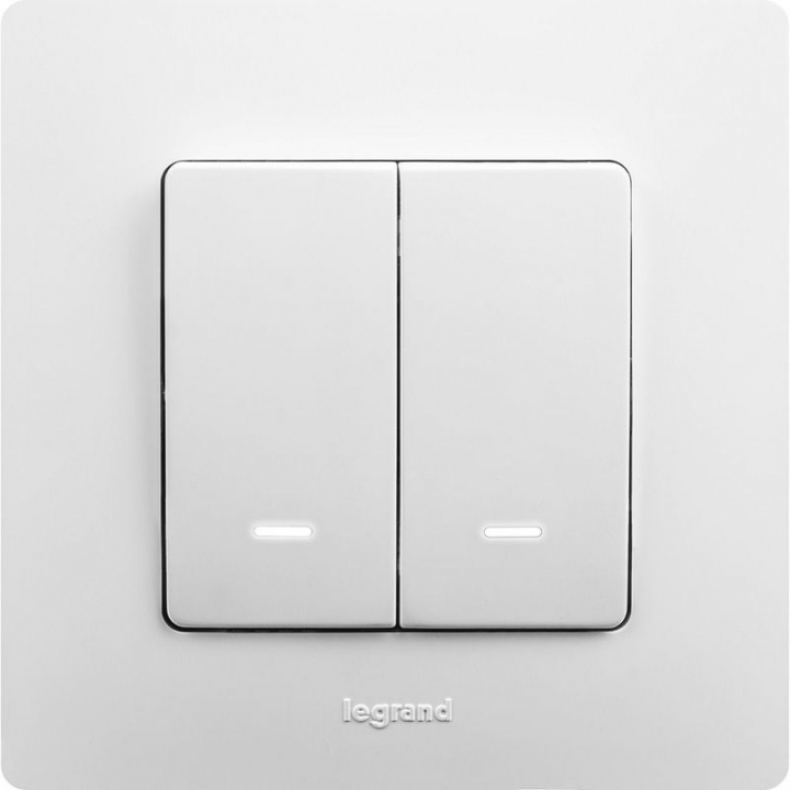Выключатель с подсветкой двухклавишный ETIKA для скрытого монтажа, номинальный ток 10 А. Предназначен для управления двумя электрическими цепями.