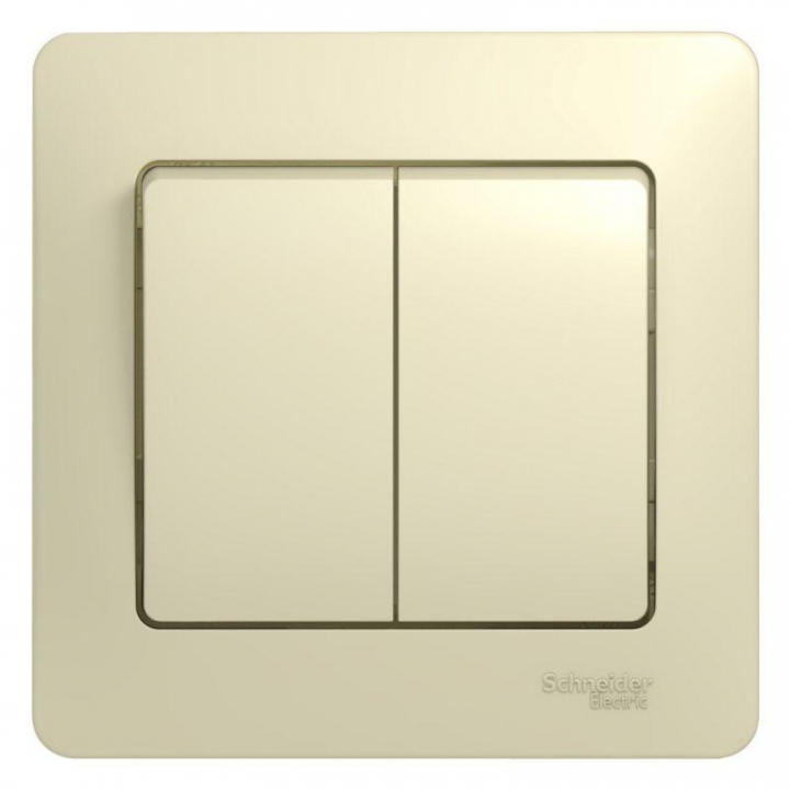 Выключатель Systeme Electric (ранее Schneider Electric) серии Glossa (в сборе, цвет бежевый) двухклавишный подходит для сетей 250 В, на ток 10 А. Двухклавишный выключатель позволяет управлять двумя источниками света с одной точки. Выполнен из материала PС+ASA, стойкого к УФ-излучению и появлению царапин. Эргономичные клеммы расположены в два ряда: сверху и снизу.