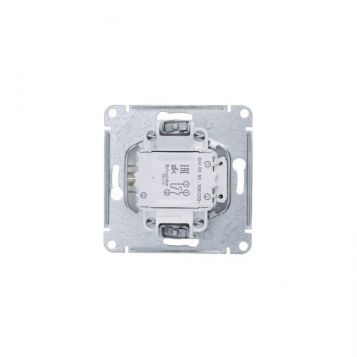 Механизм Systeme Electric (ранее Schneider Electric) серии Glossa (цвет платина) выключателя 2-клавишного c подсветкой подходит для сетей 250 В, на ток 10 А. - Благодаря современной светодиодной подсветке зеленого цвета изделие легко найти в темноте. - Двухклавишный выключатель позволяет управлять двумя источниками света с одной точки. - Выполнен из материала PС+ASA, стойкого к УФ-излучению и появлению царапин. - Эргономичные клеммы расположены в два ряда: сверху и снизу.