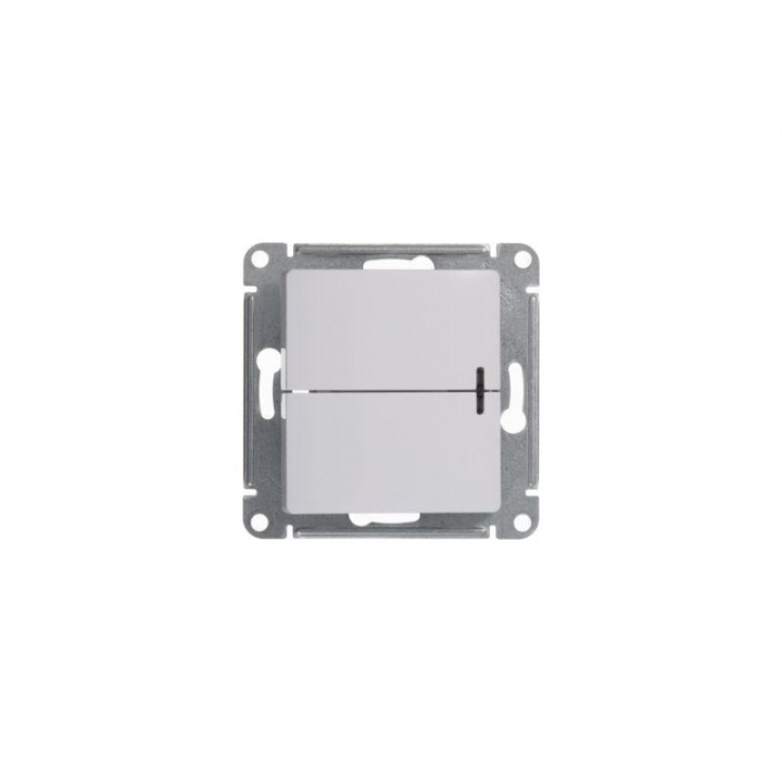 Механизм Systeme Electric серии Glossa (цвет белый) выключателя 2-клавишного c подсветкой подходит для сетей 250 В, на ток 10 А. - Благодаря современной светодиодной подсветке зеленого цвета изделие легко найти в темноте. - Двухклавишный выключатель позволяет управлять двумя источниками света с одной точки. - Выполнен из материала PС+ASA, стойкого к УФ-излучению и появлению царапин. - Эргономичные клеммы расположены в два ряда: сверху и снизу (ранее Schneider Electric NU521118N).