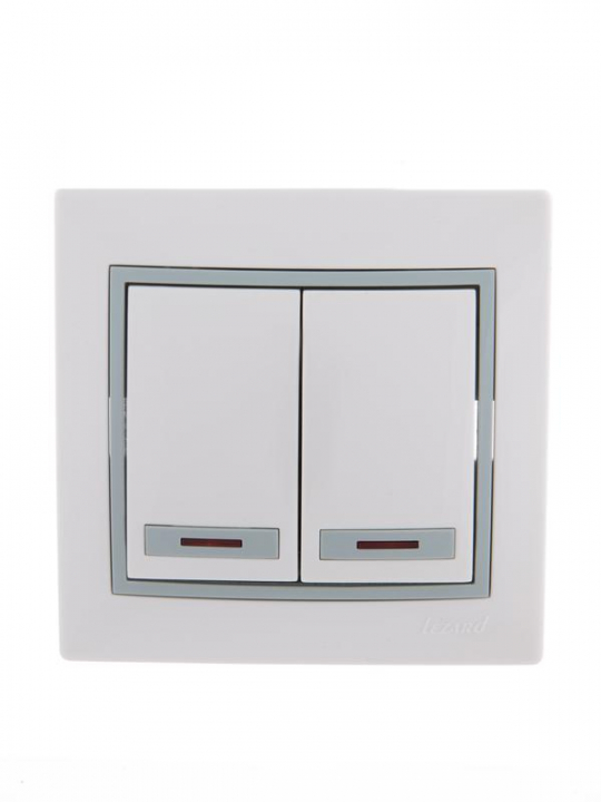 Выключатель 2-кл. СП Mira 10А IP20 с подсветкой с сер. вставкой бел. LEZARD 701-0215-112