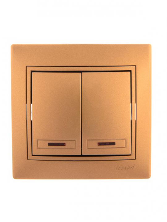 Выключатель 2-кл. СП Mira 10А IP20 с подсветкой со вставкой зол. метал. LEZARD 701-1313-112