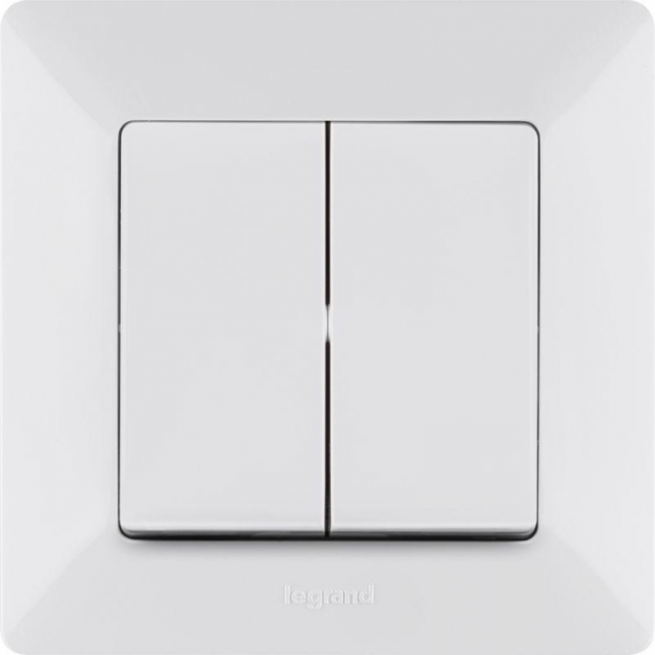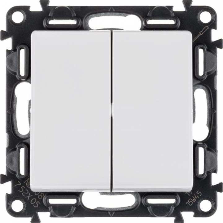 Механизм выключателя 2-кл. Valena Life 10А 250В с лицевой панелью; безвинтовые зажимы бел. Leg 752405 – электроустановочный механизм. Представляет собой двуклавишный выключатель, из пластика, с лицевой панелью белого цвета, скрытой установки, монтируемый под штукатурку.