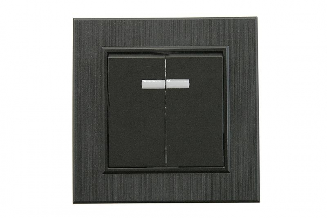 Выключатель 2-клав. с подсветкой Karea LINE STAR чер.Makel 86054023