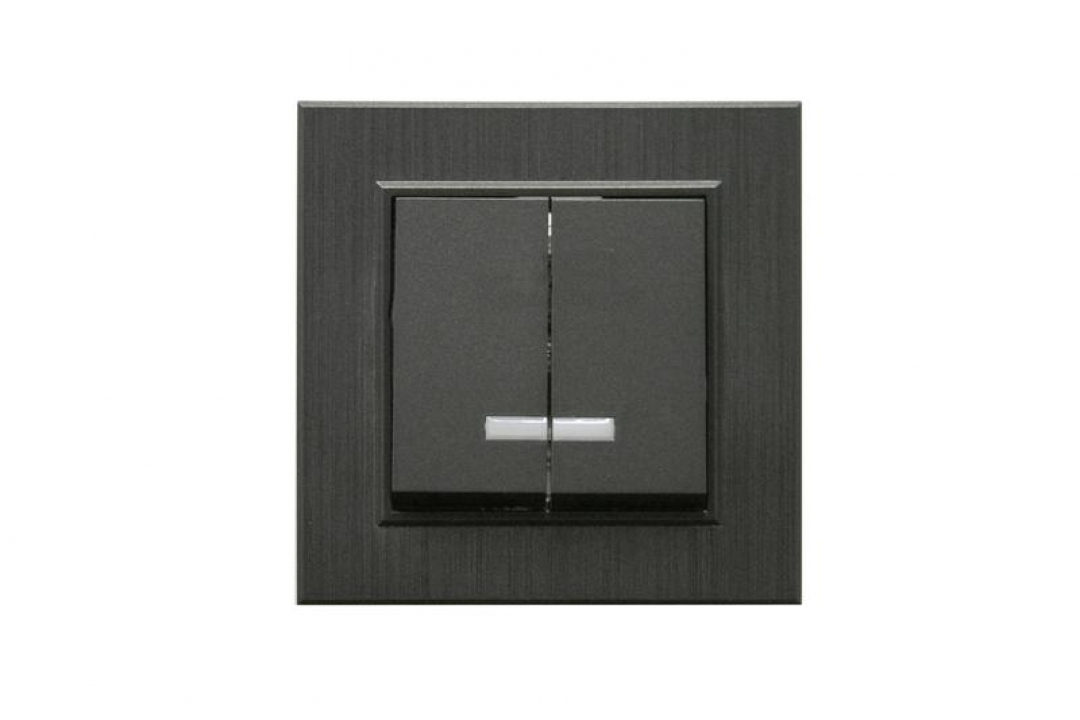 Выключатель 2-клав. с подсветкой Karea LINE STAR дым. металлик Makel 86050023