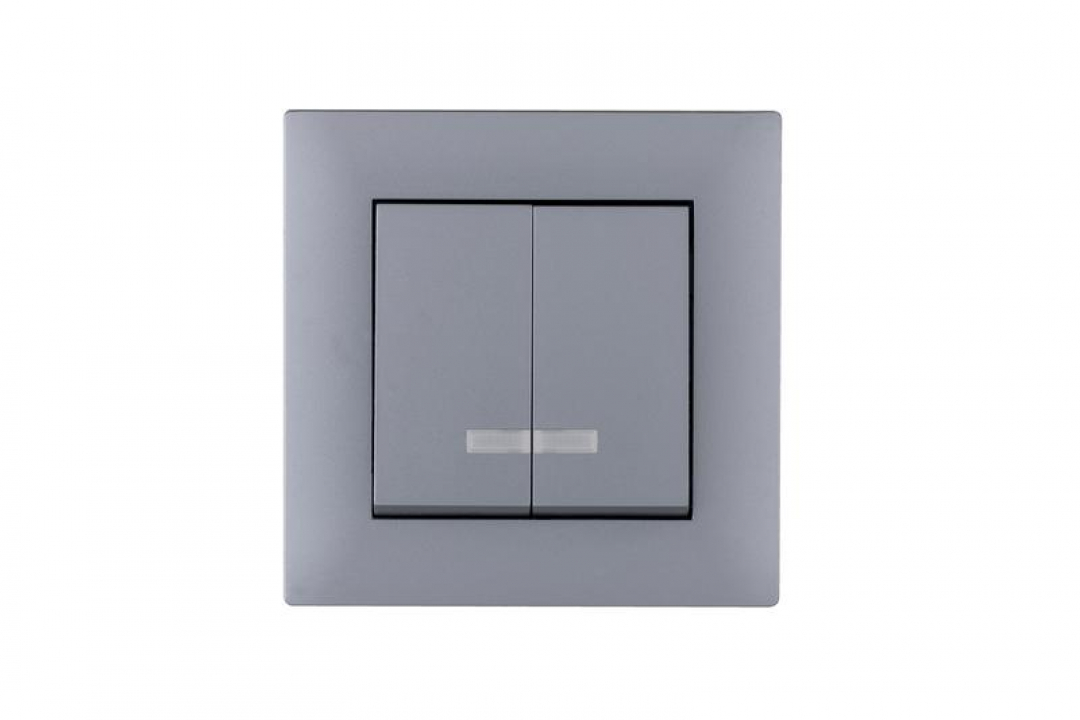 Выключатель 2-клав. с подсветкой Karea RIZZ STAR сер. Makel 88065023