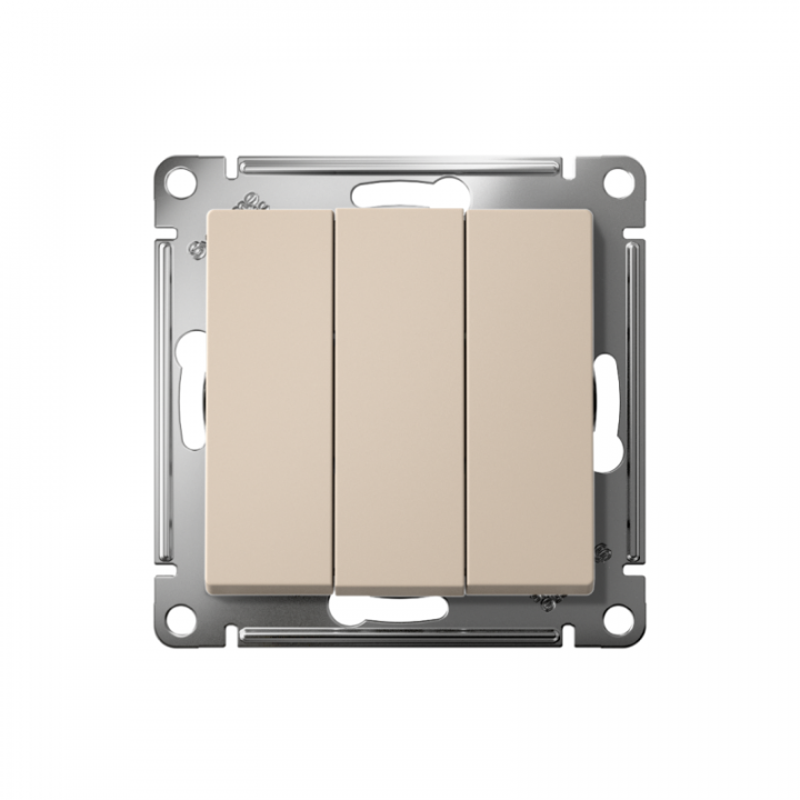 Механизм Systeme Electric (ранее Schneider Electric) серии AtlasDesign в цвете песочный выключателя 3-клавишного подходит для сетей 250 В, на ток 10 А. Трёхклавишный выключатель позволяет управлять тремя источниками света из одной точки. Лицевые детали из качественного ABS-пластика, устойчивого к царапинам и УФ-излучению. Усиленные прямые монтажные лапки для лучшей фиксации механизма в монтажной коробке.