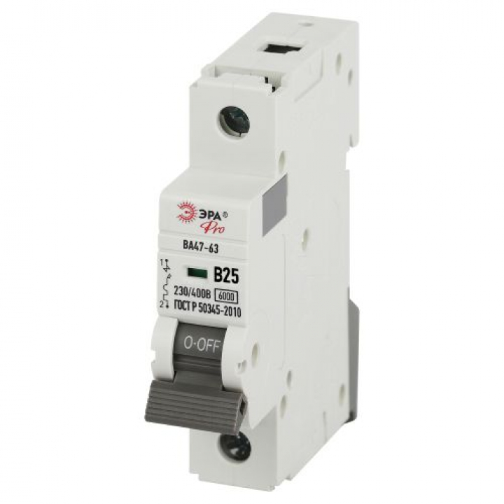 Выключатель автоматический 1п B 25А 6кА ВА47-63 PRO VA63-1P25B6 Эра Б0063005