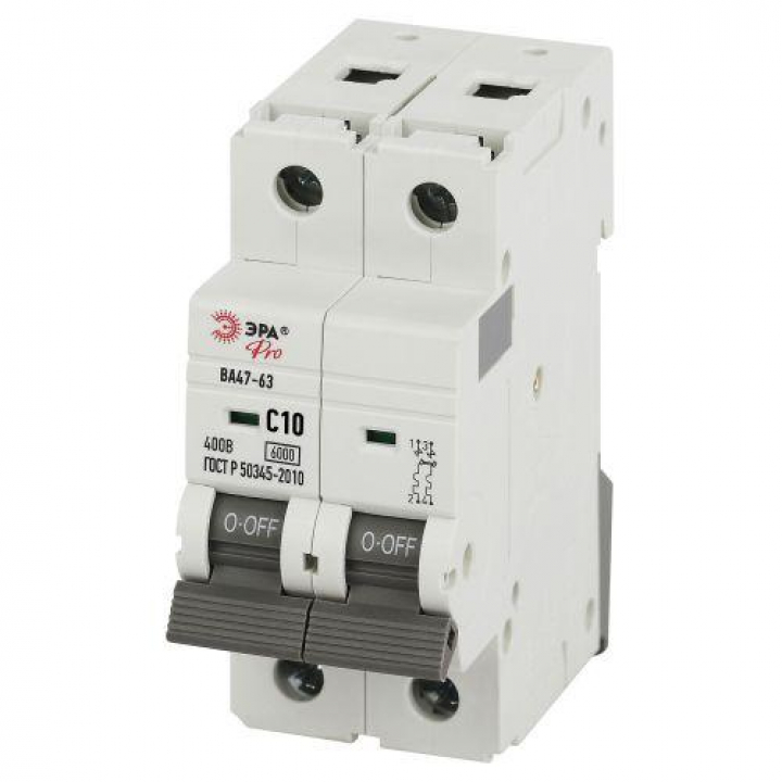 Выключатель автоматический 2п C 10А 6кА ВА47-63 PRO VA63-2P10C6 Эра Б0063152